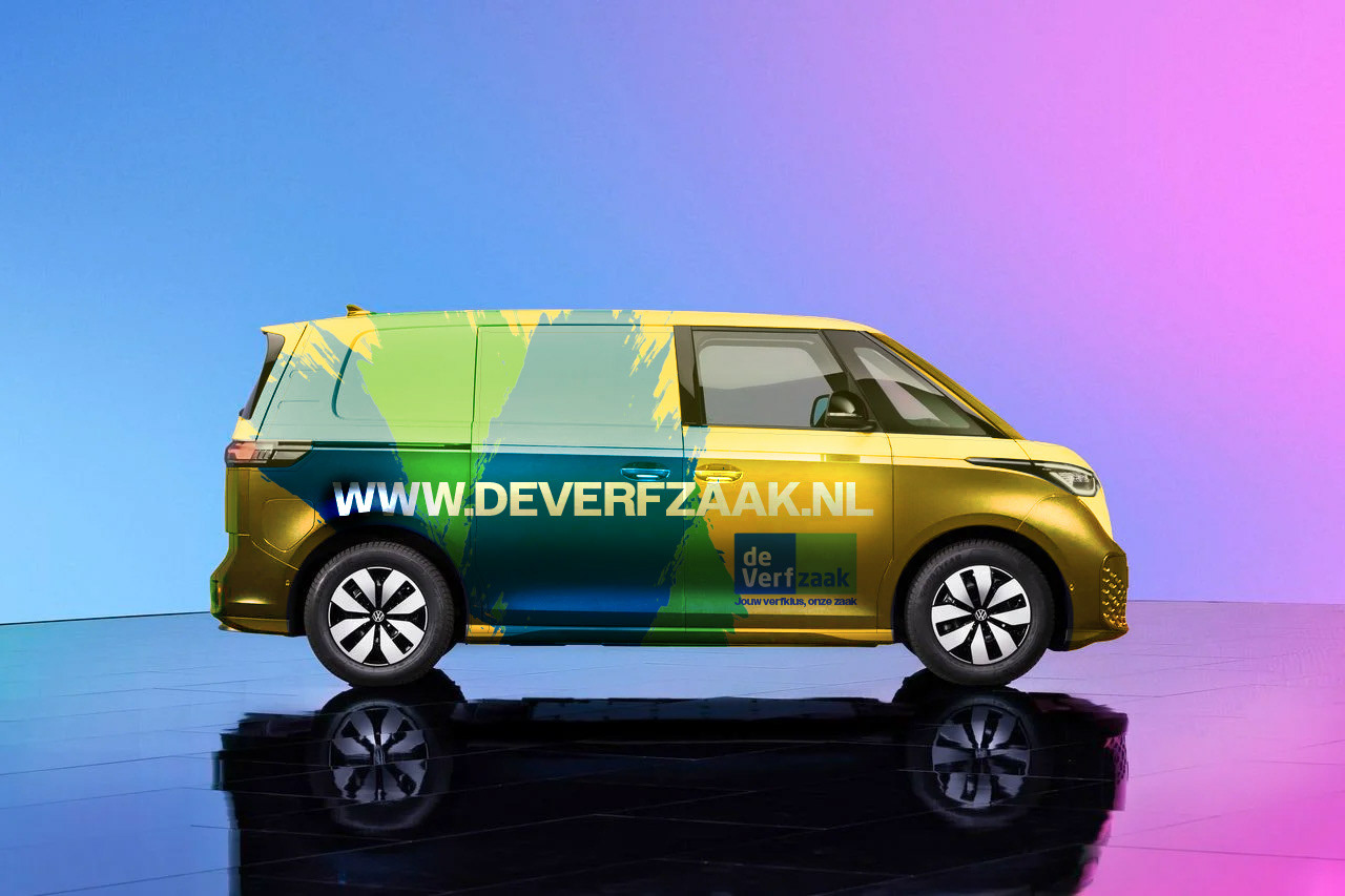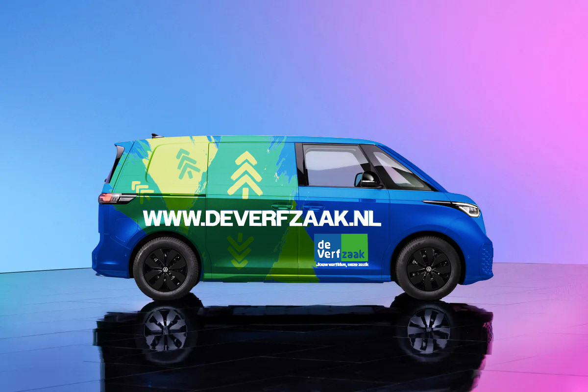 Hier heb ik een ontwerp voor gemaakt, met behulp van de huisstijl en de design elementen die ik heb gekregen om mee te werken. Het ontwerp een effect over de zijkanten wat lijkt alsof iemand verf tegen het busje heeft aan gegooid, met daarbij het logo en de slogan van het bedrijf.