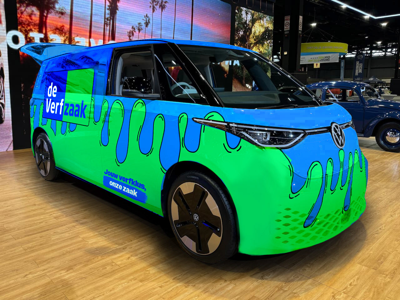 Het bedrijf wou zeker hun logo erop en wat verf, omdat het bedrijf een verfzaak is.